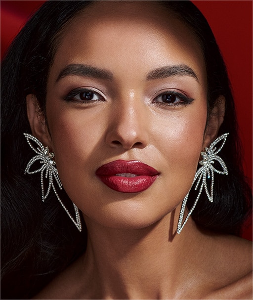 Betonen Sie die Lippen mit dem Limited Edition Lippenstift in Red Velvet und malen Sie fĂŒr einen volleren Look leicht ĂŒber die Lippenkontur. Tragen Sie fĂŒr ein besonders glĂ€nzendes Finish Limited Edition Lip Gloss in Pink Persuasion ĂŒber dem Lippenstift auf.